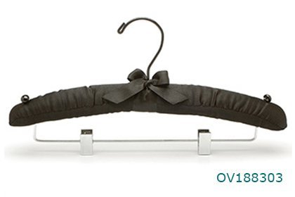 Padded black satin bulky suit hanger