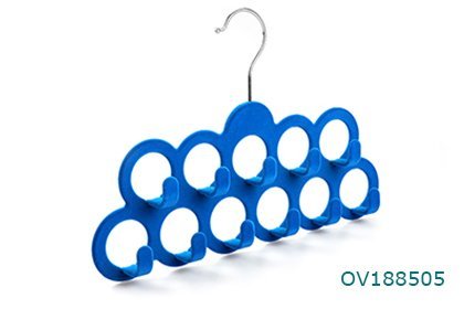 Velvet flocked blue 11 hook belt & scarf hanger tie rack clothing accessories