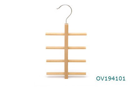 Space-saving 4 bars natural wooden scarf belt hanger