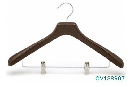 PU covered wooden PU leather coat hanger
