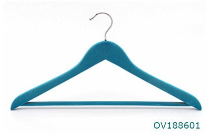 Display style colored wood and velvet hangers for clothes