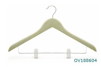 Green velvet clothes hanger with clips