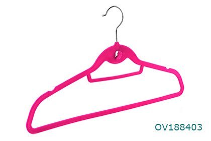 Ultra thin pink velvet cascading hook hanger with tie bar